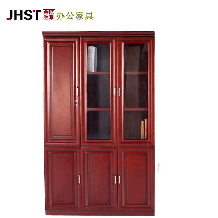 北京老板组合书柜双玻璃门胡桃木纹烤漆文件柜